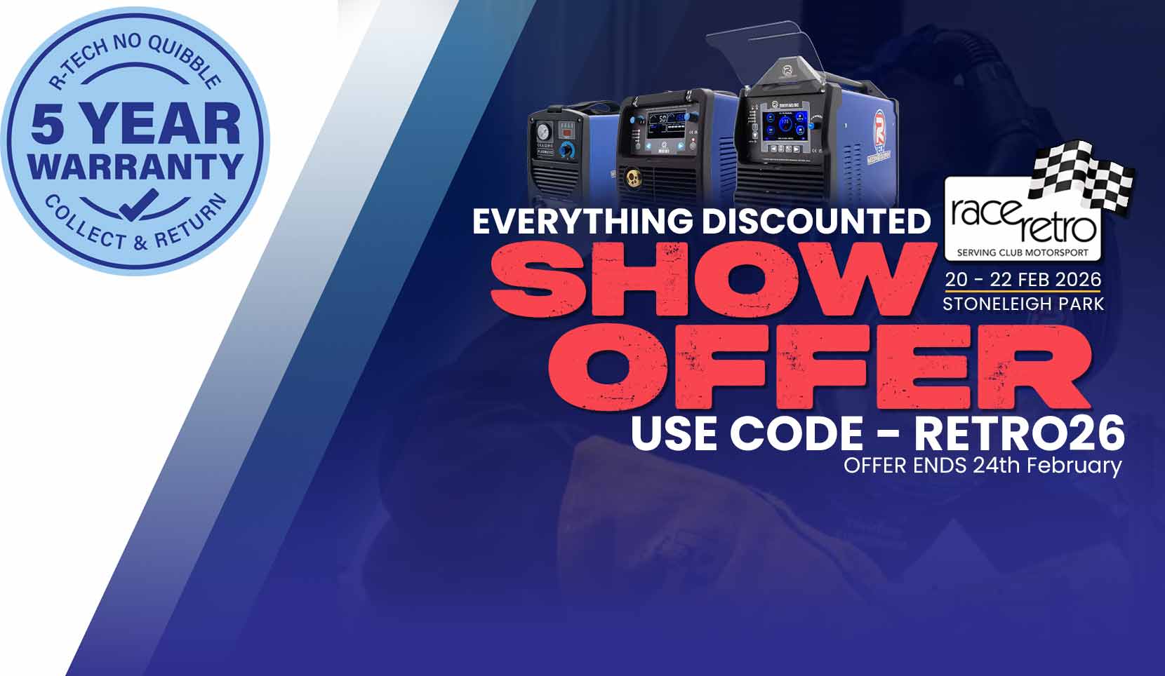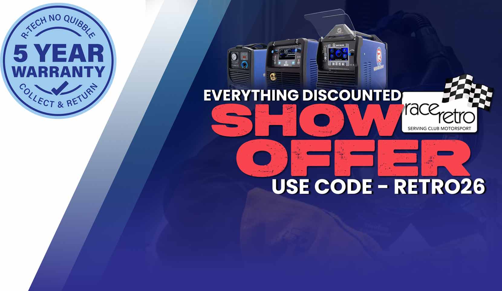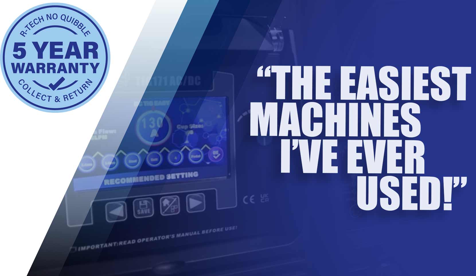 R-Tech offer a 5 year collect and return warranty on the R-Tech Mig Welders, Tig Welders , Plasma Cutter & MMA Stick Welders