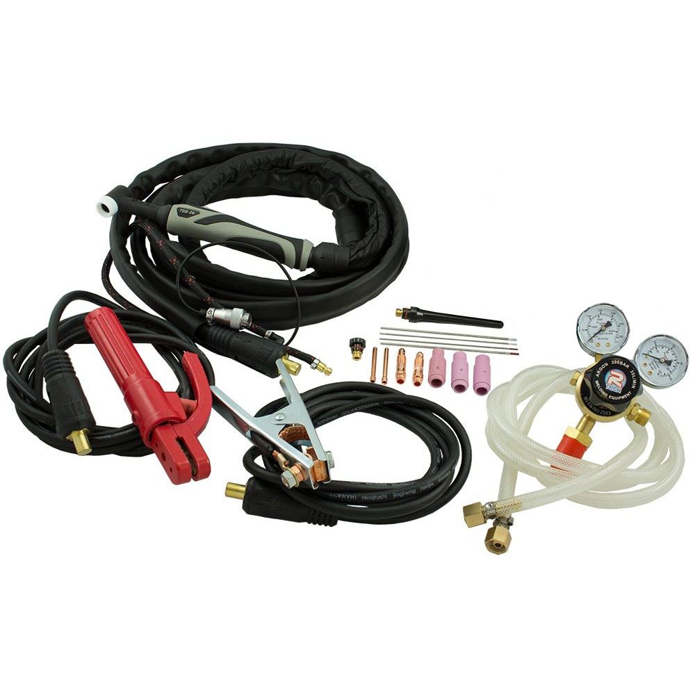 - Package Includes, R-Tech Tig161 AC/DC Tig Welder, 4M WP26 Air Cooled Tig Torch, Earth Lead, MMA Lead, Gas Hose, Mains Cable, Argon Regulator, Owners Manual, Torch Consumables Kit including Tungstens