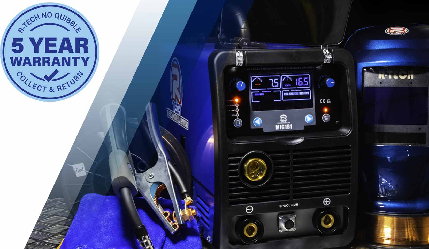 With MIG welders from 180 amp to 450 amp models we have a welder to suit your needs. All R-Tech machines come with a 5 year no quibble collect & return warranty for total peace of mind. We also offer delivery on the UK mainland. Need help? Call for friendly expert advice on 01452 733933 or via website LiveChat.